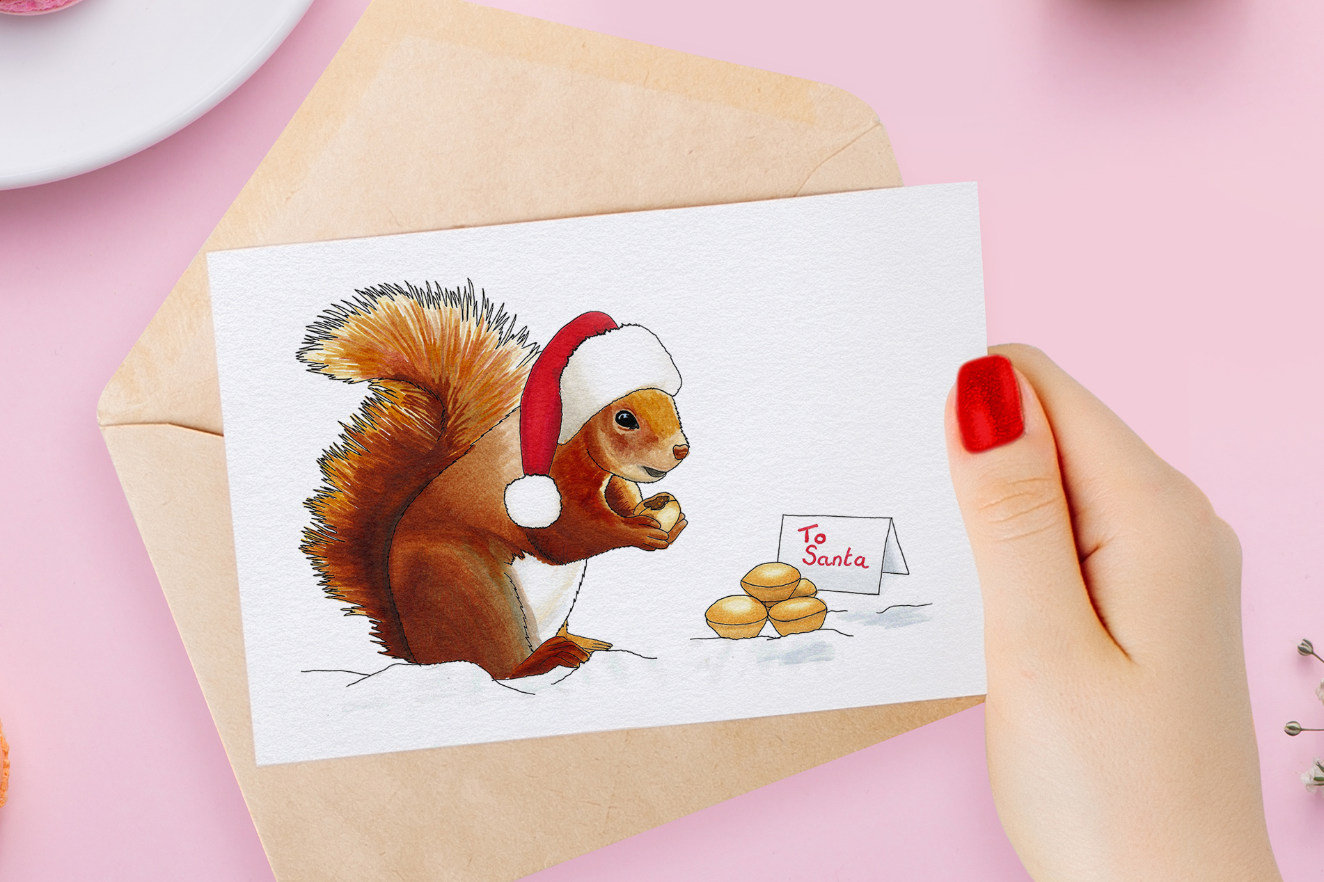This cute Christmas illustration of a squirrel will be sure to bring joy to your loved ones this holiday season. The card comes with a white envelope, and the inside of the card is blank for you to add your own personal message.